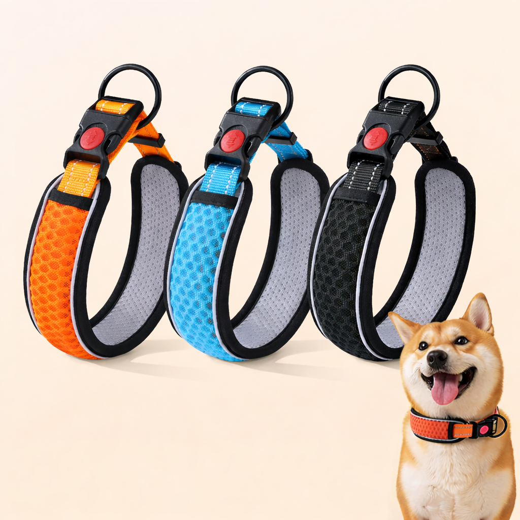 Zorg voor maximale veiligheid tijdens elke wandeling met deze reflecterende hondenhalsband met bijpassende riem. Dankzij de hoogwaardige reflecterende details is jouw hond goed zichtbaar in het donker en bij slecht weer. Ideaal voor avondwandelingen, vroege ochtenden of regenachtige dagen.